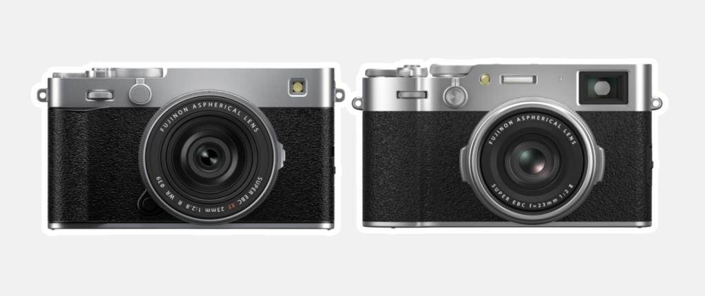 As you can see above, the XE5 has a similar look and feel to the X100VI in terms of size and rangefinder-style design. However, it doesn’t have a fixed lens like the X100VI. It is sold with a similar 23mm kit lens.